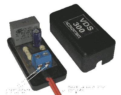 The voltage that will be detected is applied trough the internal 2-pole terminal, located inside the VDS300 plastic box (i have to press gently the long side of box to release the top).