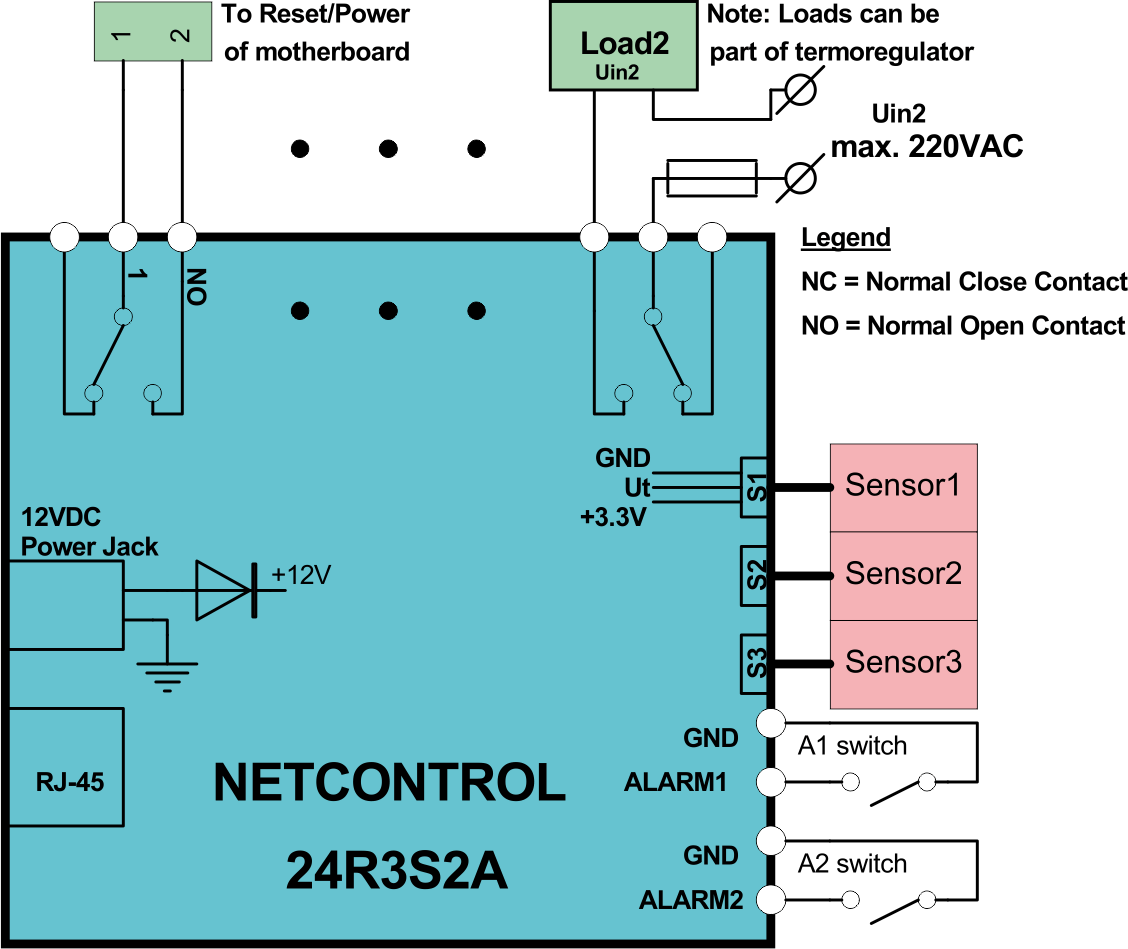 - switch on-off/reboot (normal close relay contact) of up to 24pcs appliances for up to 7A/220VAC (with ability of automatic reboot on PING lost to up to 24 IP address)